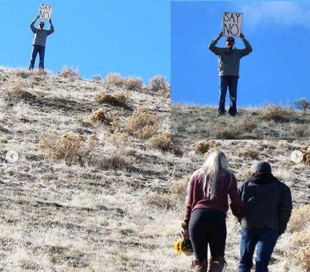 Lelaki itu memilih lokasi melamar di Nevada, Amerika Syarikat (AS), di kawasan bukit-bukau yang cantik di bawah langit biru.