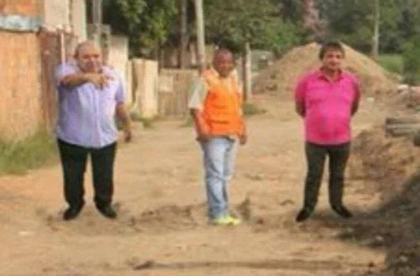 Gambar tersebut menunjukkan Datuk Bandar Alvorada, José Arno Appolo do Amaral dan timbalannya Valter Slayfer berada di sebuah tapak kapal korek di Alvorada, sebuah bandar di Brazil.