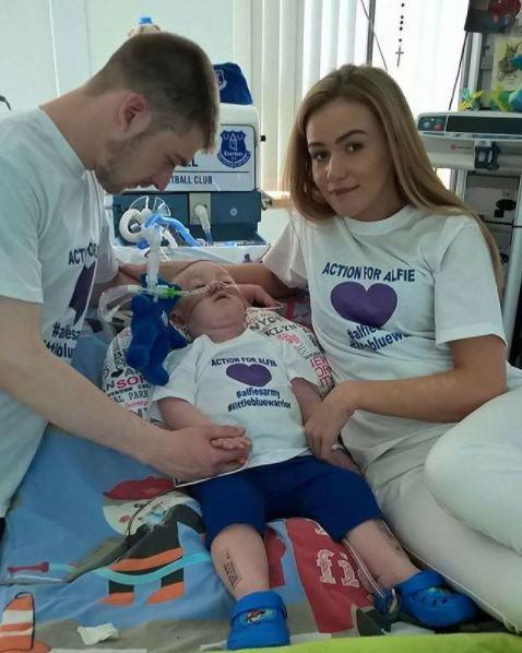 Evans dan isterinya Kate James memangku Alfie yang berusia 23 bulan ketika dia meninggal dunia pada jam 2.30 pagi Sabtu di Hospital Kanak-Kanak Alder Hey di Liverpool.