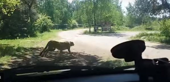 Pertama kali keluar dari kereta, haiwan itu seolah-olah mengabaikan pelancong tersebut, yang akhirnya kembali masuk ke dalam kenderaan dan meneruskan lawatan.