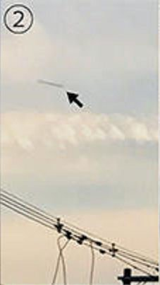 "Objek terbang berbentuk curut yang tidak dikenal pasti ditunjukkan pada dawai elektrik di mana banyak burung berhenti bertenggek," Ido menulis tentang objek terbang panjang yang dilihatnya di Nozaki, Oita City, Osaka, pada 21 April 2017.