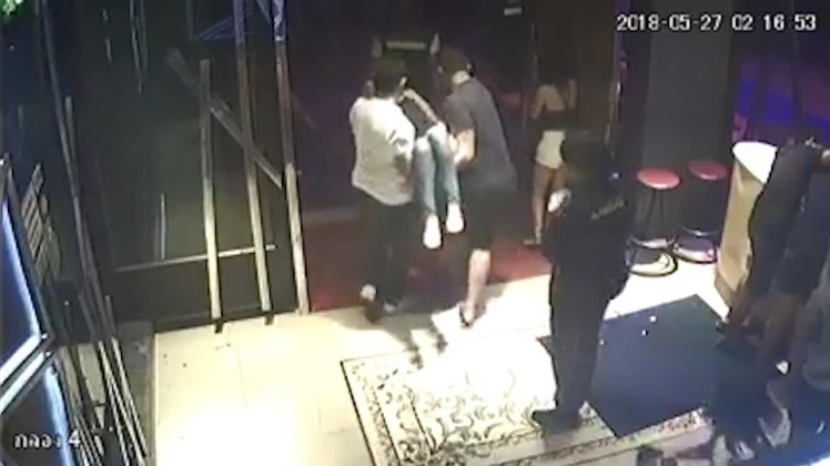 SEBUAH rakaman kamera litar tertutup (CCTV) menunjukkan empat lelaki mengangkat seorang wanita yang mabuk keluar dari sebuah bar sebelum merogol dan membunuh mangsa.