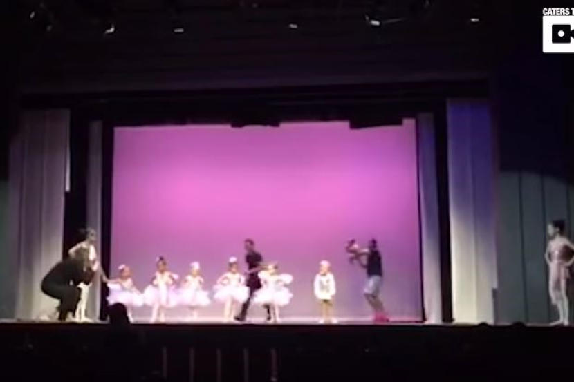 SEORANG bapa dengan tiga anak menyentuh hati penonton selepas bergegas naik ke pentas untuk membantu anak perempuannya yang tidak dapat membuat persembahan kerana gugup.