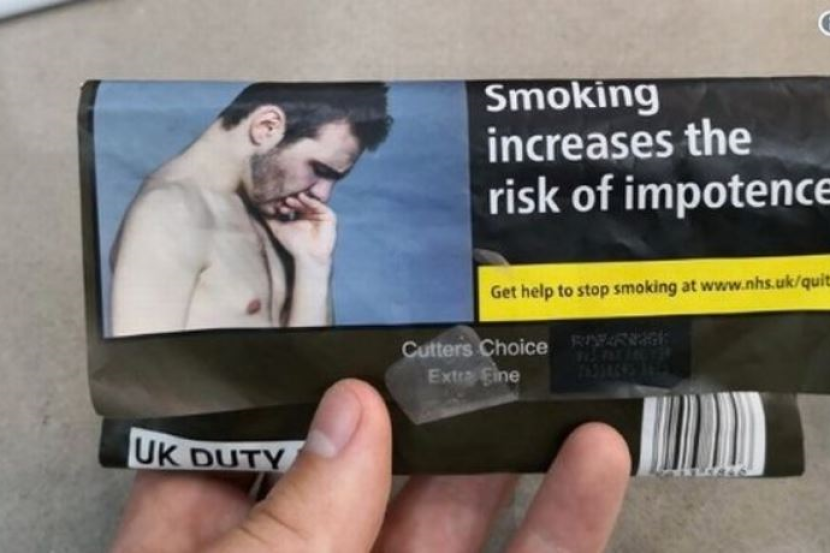 Jadi, dia mengambil gambar kotak rokok itu, yang memberi amaran kesihatan dengan memaparkan seorang model lelaki tidak berbaju sedang tunduk kebimbangan.