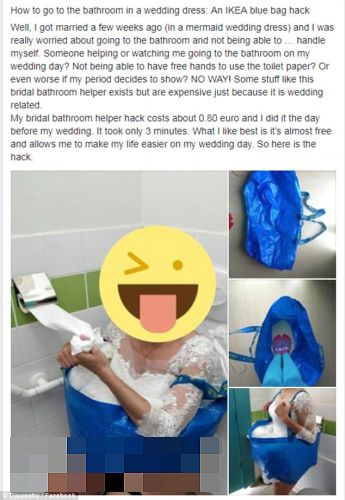 Apabila perlu ke tandas pada hari perkahwinannya, pengantin perempuan yang bijak itu tidak perlu menyusahkan orang lain untuk membantunya membuka gaunnya yang sarat itu.