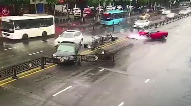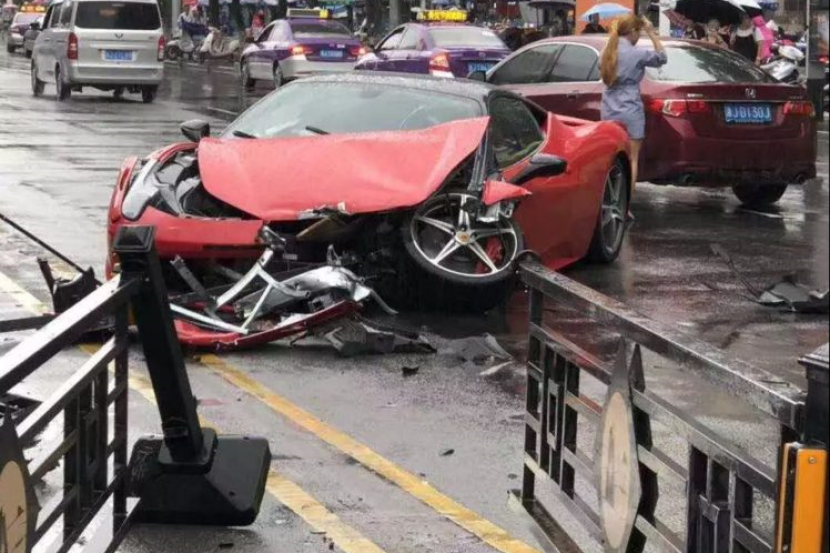 Insiden yang dirakam saksi kejadian menunjukkan bahagian depan Ferrari itu remuk teruk, sekali gus menyebabkan beg udara berfungsi walaupun wanita berkenaan memandu pada kelajuan sederhana.