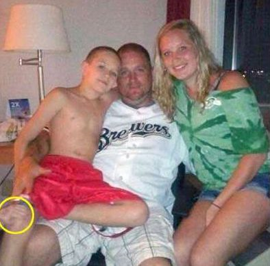 Dalam foto itu yang diambil beberapa tahun lalu, dapat dilihat satu tangan berada di atas lutut Kyle, yang ketika itu berusia 10 tahun.