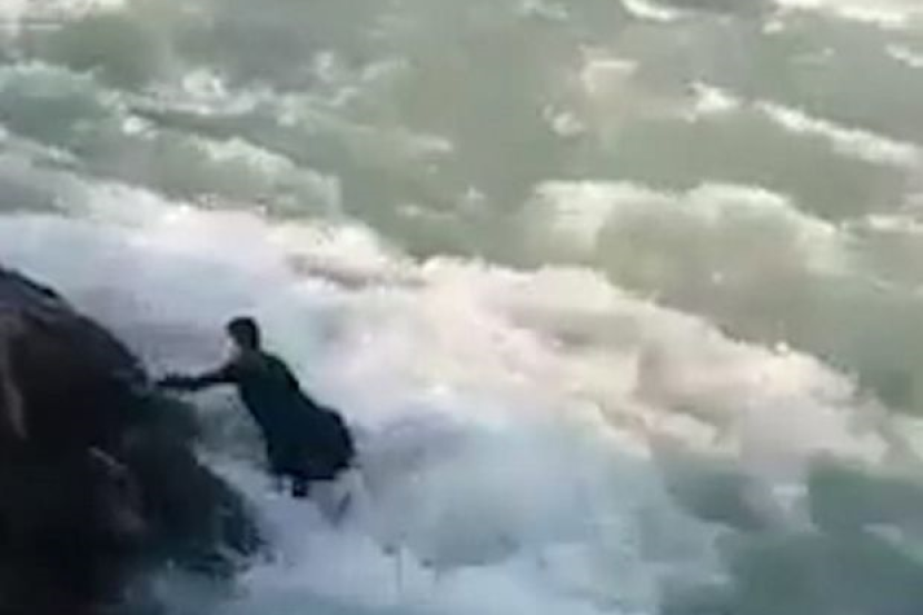 Video menunjukkan dia pergi dekat dengan sungai sebelum jatuh tergelincir.