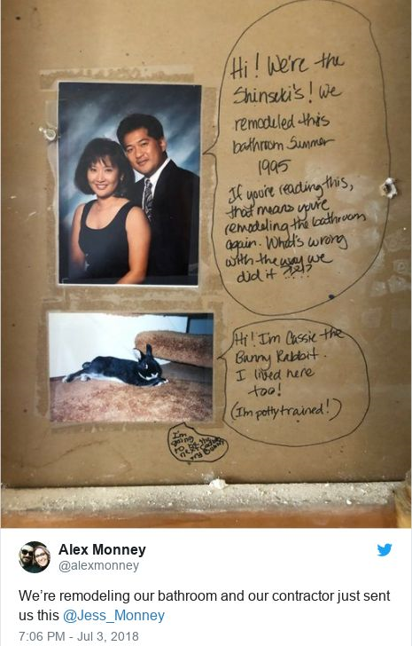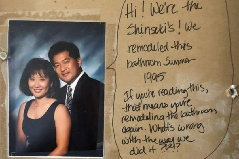 Pasangan tersebut menulis: "Kalau anda membaca surat ini, ia bermakna anda ingin mengubah suai bilik air ini semula.