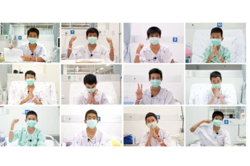 12 remaja pasukan bola sepak yang berjaya diselamatkan dari sebuah gua di Thailand selepas lebih dua minggu terperangkap. Foto AFP