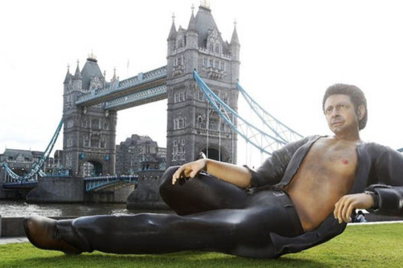 Patung gergasi yang menjadi replika kepada aktor Jeff Goldblum bukan main santai lagi berbaring di tengah kota London.