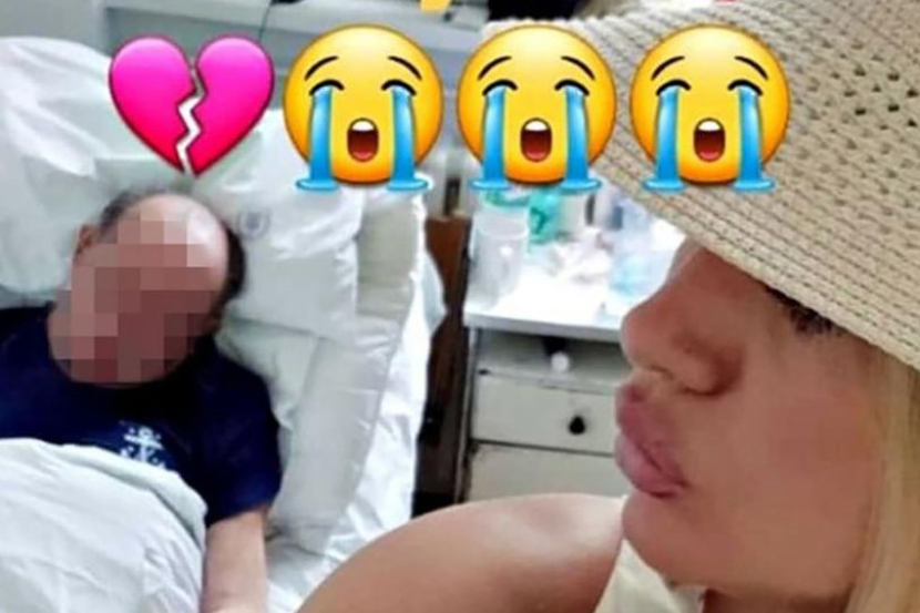 Jelica Ljubicic mengambil gambar dirinya dengan latar belakang bapanya yang sedang berbaring di atas katil.