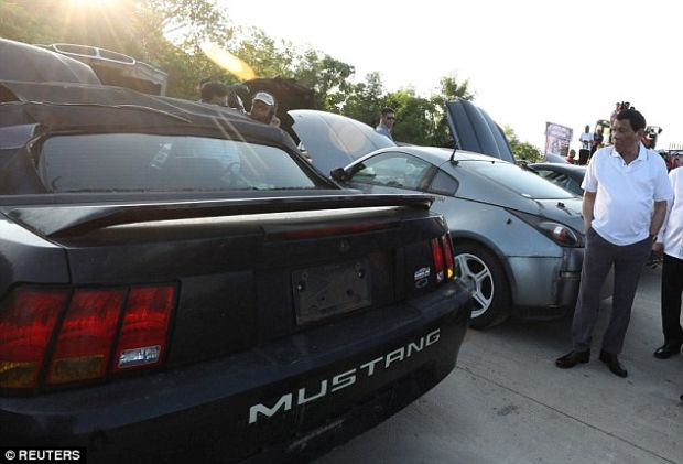Duterte membuat tinjauan sebelum kenderaan mewah itu dimusnahkan Isnin lalu.