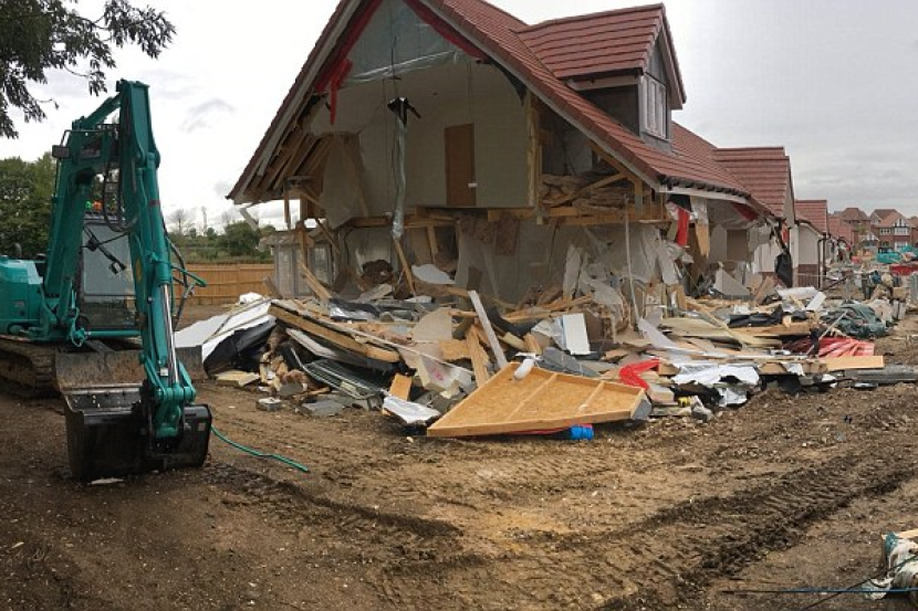 Lelaki itu ditahan polis, manakala rumah yang terletak di Buntingford, Hertfirdshire itu memerlukan lebih kurang 500,000 pound untuk diperbaiki.