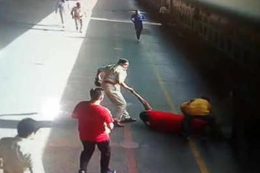 Rakaman CCTV menunjukkan polis berkenaan berlari untuk menolong wanita itu dan berjaya menyelamatkan nyawanya dengan cara mengheretnya ke platform.