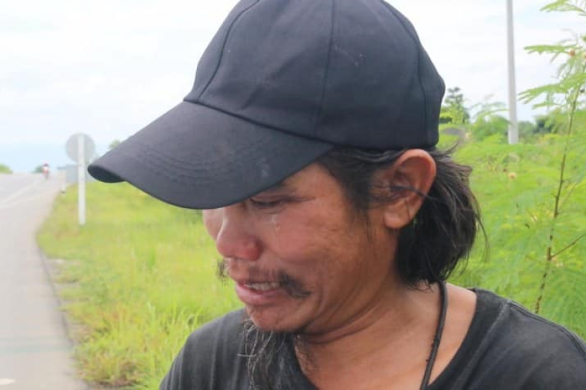 Apabila ditanya mengenai teman wanitanya yang meninggal dunia, air matanya terus mengalir.
