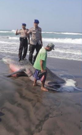Akaun Twitter Polis Jogjakarta pada Isnin telah memaparkan video yang menunjukkan bagaimana bangkai seekor ikan jerung besar yang terdampar di Pantai Parangkusumo di Kabupaten Bantul, Indonesia ditanam pada petang Isnin.