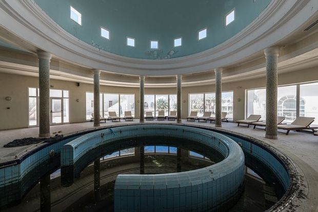 "Ia seperti 'syurga' yang hilang. Kolam renang mengandungi air hijau yang kotor, separuh dipenuhi dengan pasir dan tumbuh-tumbuhan, atau hanya garam yang tersisa dalam kolam air masin.