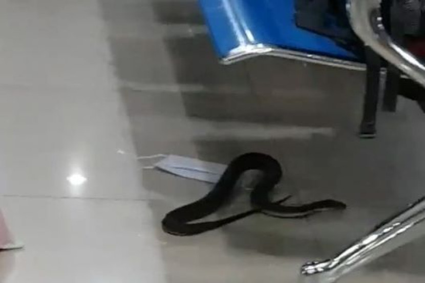 Ular itu bergerak bebas di ruang berlepas utama terminal lapangan terbang yang memaksa penumpang memanjat kerusi masing-masing.