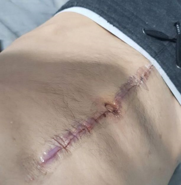 "Seterusnya, ingatan saya yang jelas adalah terjaga di tempat tidur hospital. Perut saya sangat sakit. Saya menarik selimut dan melihat luka dari bawah puting ke pangkal paha saya.