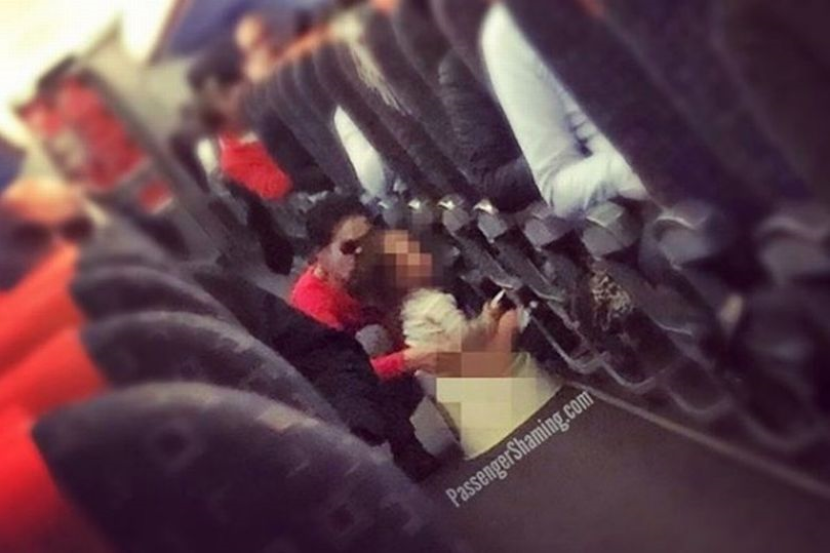 Tindakannya itu dirakamkan sedang duduk, sedang membantu anaknya menggunakan 'tandas' secara terbuka, dengan jarak begitu dekat dengan para penumpang lain.