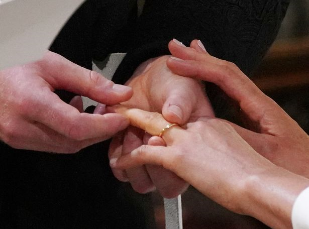 Putera Harry menyarung cincin ke jari manis Meghan.