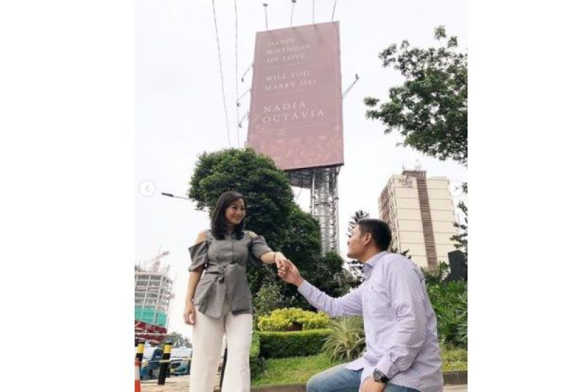 JAKARTA: Adya Laksmana Sudrajat melamar taman wanitanya, Nadia Octavia dengan menyuarakan hasrat itu pada sebuah papan iklan setinggi 16 meter di salah sebuah jalan paling sibuk di Jakarta.
