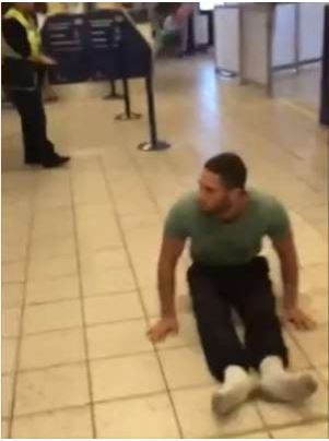 Berdasarkan gambar-gambar dikeluarkan pada Jumaat dia kelihatan bergerak mengesot di lapangan terbang menggunakan tangannya. Dia juga terpaksa 'memanjat' naik ke troli bagasi ketika mahu mendapatkan teksi.