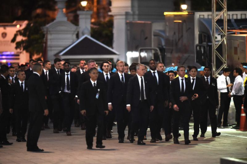 PEMAIN Leicester City tiba di Thailand bagi menghadiri upacara pengebumian pemilik kelab itu, Vichai Srivaddhanaprabha.