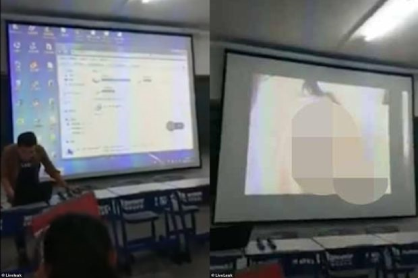 Kelas berkenaan riuh dengan suara pelajar lelaki bersorak dan menjerit kerana video porno dimaikan di layar skrin ketika guru itu masuk semula ke dalam kelas.