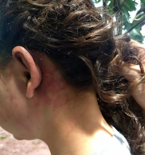 Gambar-gambar menunjukkan muka, leher dan dadanya melecur teruk, manakala mangsa menunjukkan tanda-tanda diserang dengan luka pada tangan, jari dan lebam di belakang kepalanya.