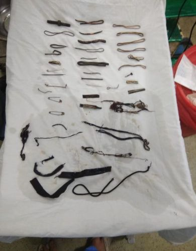 Pesakit itu dipercayai telah menelan barang-barang tersebut dalam tempoh masa yang lama, menyebabkan perutnya mengeras.