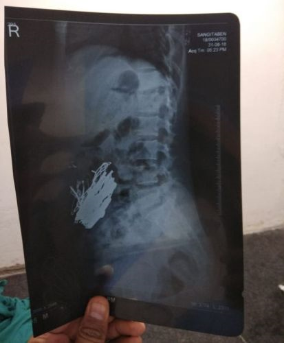 Pakar bedah kanan di hospital awam Ahmedabad di India, Dr Nitin Parmar berkata: "Perut wanita itu keras macam batu. Apabila kami buat X-ray, ada ketulan di perutnya.