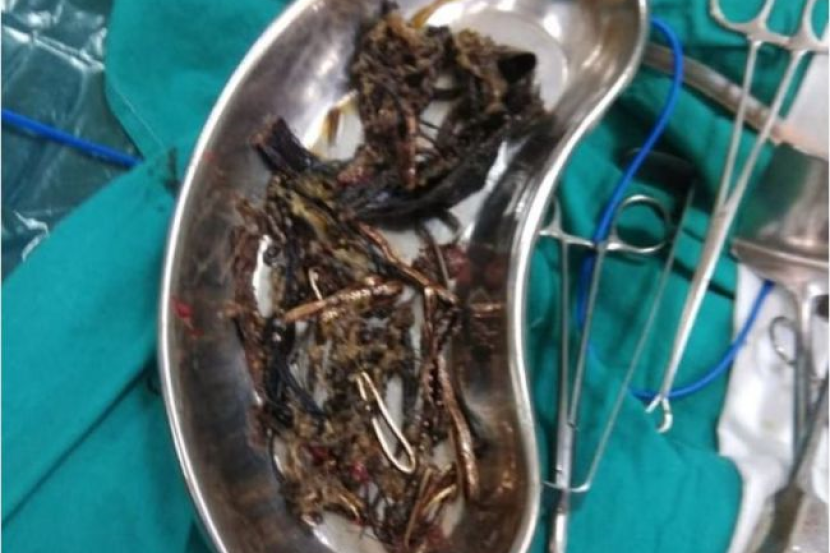 DOKTOR bersama pasukan perubatan bingung dan seakan tidak percaya apabila mereka mengeluarkan berpuluh-puluh objek logam termasuk gelang, cincin dan pin rambut dari perut seorang wanita. Wanita itu, yang hanya dikenali sebagai Sangita, dimasukkan ke hospital selepas mengalami sakit perut yang teruk. Doktor kemudian menjalankan beberapa ujian untuk mencari punca kesakitannya. Tetapi mereka sangat terkejut apabila mendapati benjolan di perutnya mengandungi berpuluh-puluh objek asing. -foto Newslions Pesakit itu dipercayai telah menelan barang-barang tersebut dalam tempoh masa yang lama, menyebabkan perutnya mengeras. Pakar bedah kanan di hospital awam Ahmedabad di India, Dr Nitin Parmar berkata: "Perut wanita itu keras macam batu. Apabila kami buat X-ray, ada ketulan di perutnya. "Pin keselamatan yang dimakan sebahagiannya telah menyebabkan paru-parunya berlubang, malah satu pin yang dimakan telah merosakkan dinding perutnya, menyebabkan kami melakukan pembedahan segera." Doktor kemudian diberi tugas mengeluarkan pelbagai barangan yang dimakan, kebanyakannya objek tajam dan logam. Paku, pin, wayar dan dawai antara yang dimakan wanita ini. -foto CatersNewsAgency Satu barang yang ditemui dalam prosedur itu adalah 'mangalsutra', kalung tradisional yang dipakai oleh wanita beragama Hindu yang sudah berkahwin. Masih tidak diketahui mengapa dia makan barang-barang tersebut. Sangita. -foto Newslions Sangita dianggap menderita 'acuphagia', satu gangguan yang jarang berlaku di mana seseorang itu makan objek logam dan tidak dapat dicerna. Sebelum menjalani pembedahan dan dimasukkan ke hospital kerajaan, dia didapati sering merayau di sekitar jalan. Selepas beberapa hari, dia mula mengadu sakit di perut. Dia akan ditahan untuk pemerhatian doktor. -Mirror