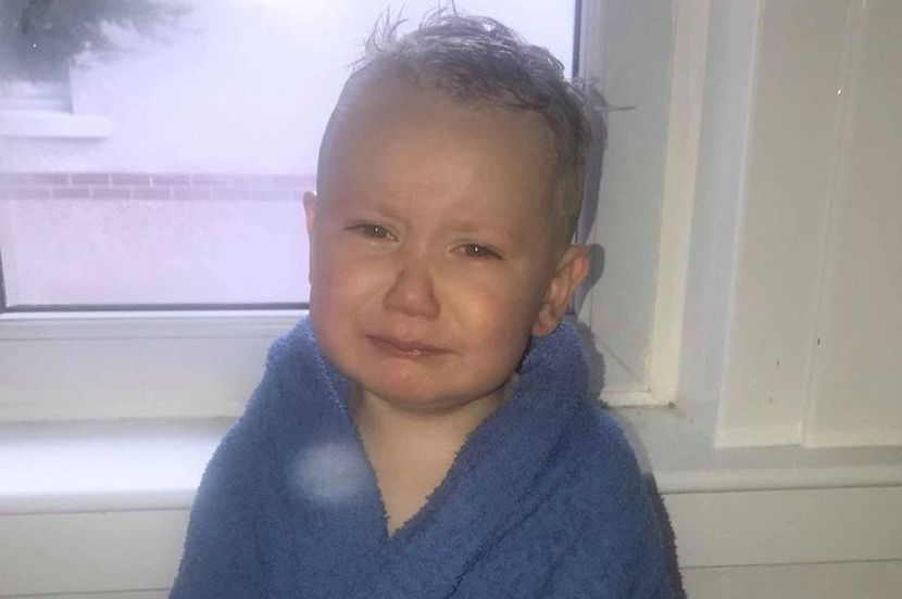 Jaymielee Stewart,23, terkejut dengan anak lelakinya berusai 3 tahun, Lucas Thomson yang telah memakai losen Vaseline (jeli petrolium) dirambutnya.