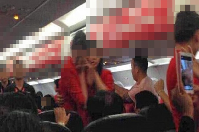 Dalam suasana kecoh, penumpang dilihat mengeluarkan telefon pintar untuk merakam gambar pramugari yang menjerit kesakitan sambil menutup mukanya.