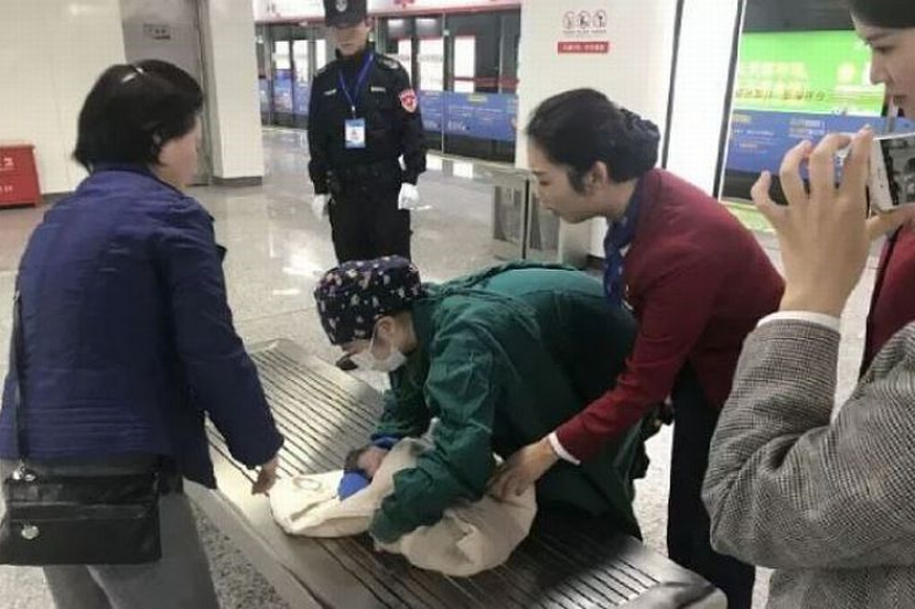 Wanita itu menunjukkan tanda-tanda kelahiran di Stesen Nanmendou di Fuzhou, wilayah Fujian, ketika sedang menunggu tren sekitar jam 11 pagi dan keluarganya segera menelefon ambulans.