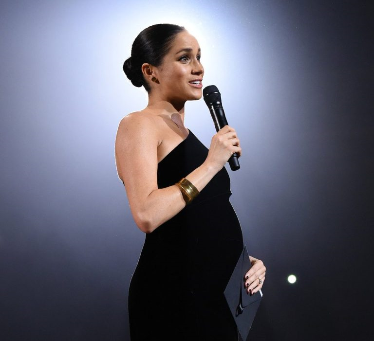 SUSUK tubuh Meghan Markle jelas menampakkan usia kandungannya hampir lima bulan ketika mengumumkan pereka busana pada hari perkahwinannya adalah pemenang Anugerah Fesyen British 2018.