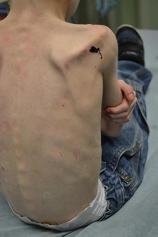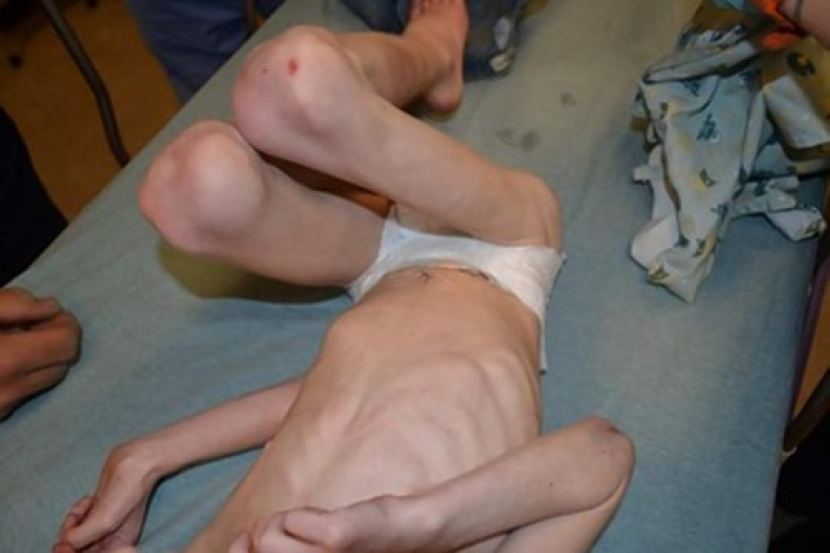 Jordan hanya berusia lima tahun dan hampir maut akibat kebuluran hanya memiliki berat badan sekitar 13 kilogram ketika ditemui.