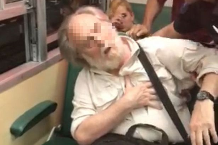 Rakaman video menunjukkan lelaki warga emas itu yang sedang duduk sambil memegang telefon bimbitnya didatangi beberapa penumpang lain.