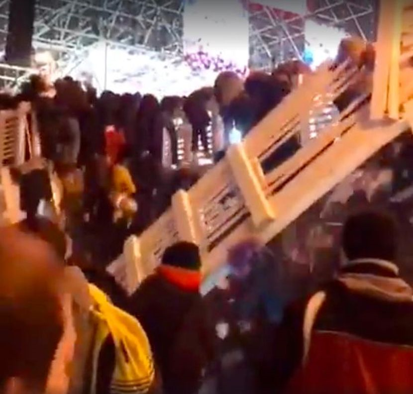 Tiada yang cedera parah di dalam kejadian itu, tetapi jumlah yang cedera mungkin meningkat akibat dihempap struktur berkenaan yang tidak dapat menampung jumlah yang ramai.