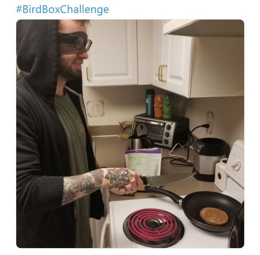 Salah satu orang awam yang memuat naik gambar dirinya melakukan 'Bird Box Challenge'. - Twitter