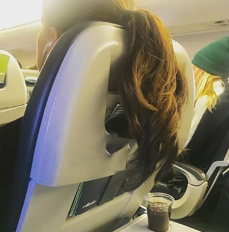 Seorang penumpang dengan selamba menjuraikan rambutnya ke belakang kerusi. - passengershaming/Instagram