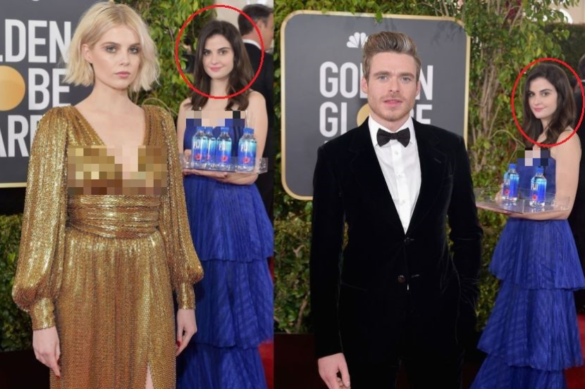 Wanita itu rupa-rupanya seorang model yang berpangkalan di Los Angeles, Kelleth Cuthbert dibayar oleh jenama air Fiji untuk memastikan tetamu kekal terhidrat pada acara tersebut