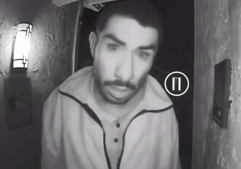 Rakaman CCTV itu memperlihatkan Roberto Daniel Arroyo begitu teruja dengan loceng rumah jirannya di Salinas, California.