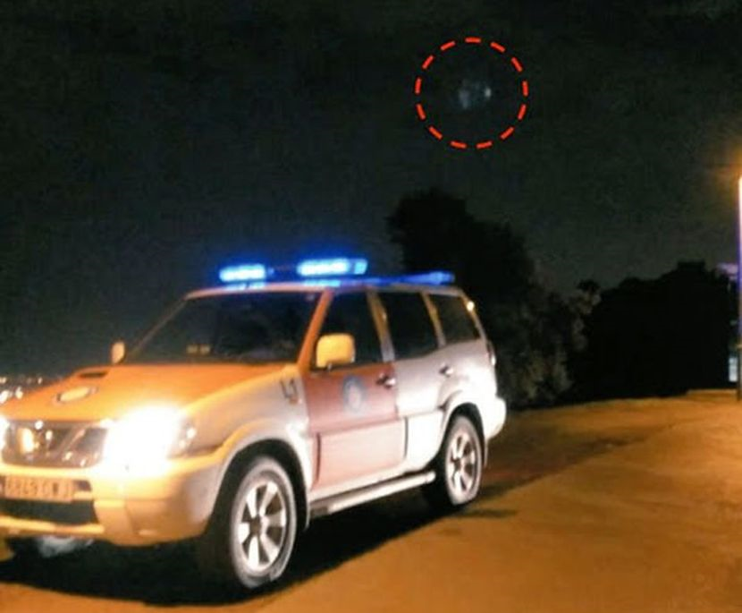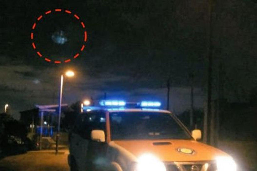 "UFO itu bersembunyi tetapi dapat dilihat kerana sinaran lampu biru kenderaan polis yang berkerdip.