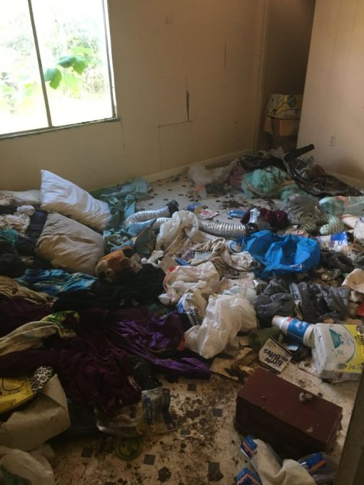 Sebaik sahaja penyiasat membuka pintu rumah, bau hancing dan najis yang kuat menusuk hidung mereka, sebelum mereka melihat tahi bersepah di seluruh lantai, menurut Pejabat Sheriff Marion County.