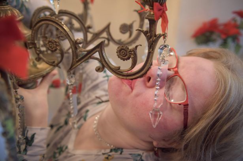Wanita berusia 33 tahun itu mengadakan 'hubungan' bersama lampu-lampu candeliernya dan 'bertunang' dengan sebuah lampu berukuran 28 inci bernama Lumiere selepas membelinya di laman web eBay.