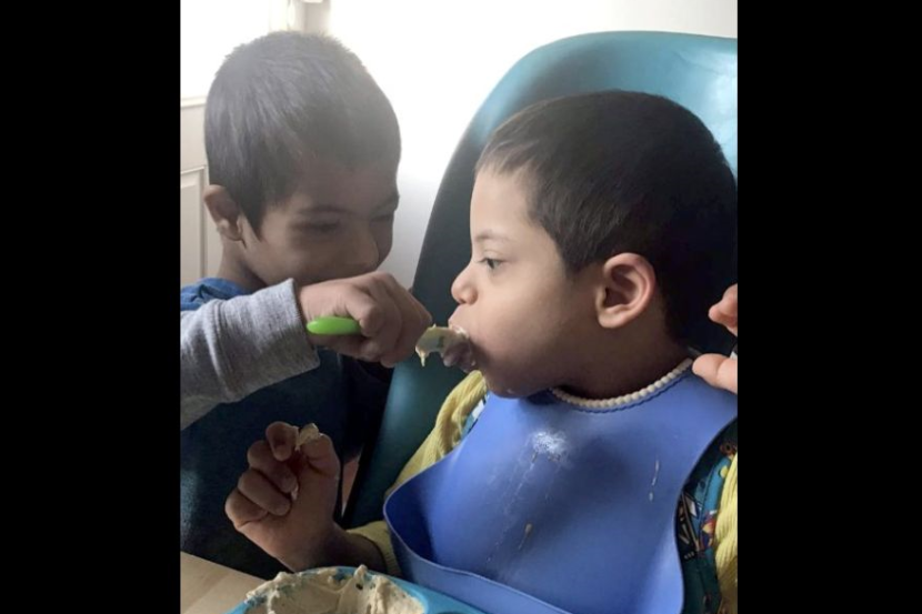 SEORANG kanak-kanak Sindrom Down berusia empat tahun menyentuh hati netizen apabila ringan tulang menjaga tiga adik-beradiknya yang kurang upaya.