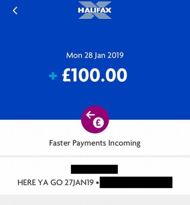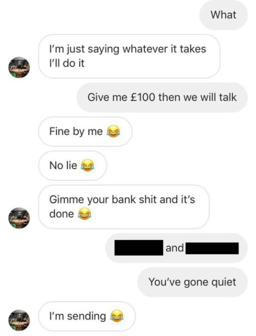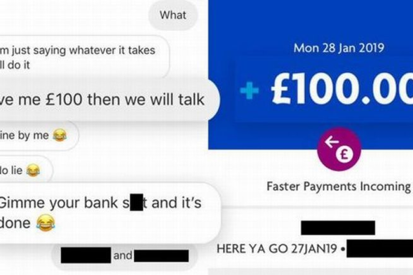 Salah satu daripadanya menunjukkan dia menuntut bayaran £100 daripada bekas kekasih yang mahu bercakap dengannya dan satu lagi menunjukkan lelaki itu benar-benar membuat bayaran tersebut.